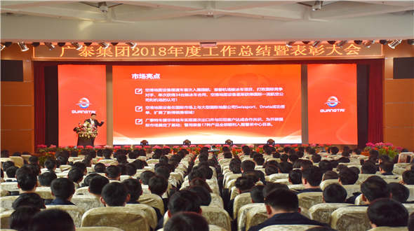 1月19日,“廣泰集團2018年度工作總結(jié)暨表彰大會”于集團研發(fā)大樓三樓會議廳召開,廣泰集團董事長李光太、副董事長郭少平、集團總經(jīng)理李文軒及廣泰集團各中心、各事業(yè)部的領(lǐng)導(dǎo)干部和股份公司獲表彰員工共計500余人參會。廣泰集團生產(chǎn)一廠、生產(chǎn)二廠、羊亭特車、中卓時代、山鷹報警、全華時代、員工通過分會場視頻同步收看集團大會。2018年是改革開放40周年,也是廣泰集團化的元年。這一年,廣泰集團緊跟國家政策,全體員工充分發(fā)揚匠心專注、執(zhí)著追求的精神,攻堅克難、不畏艱辛,各主要業(yè)務(wù)板塊超額完成任務(wù),主要經(jīng)濟指標保持中高速增長,因此本次大會是廣泰集團總結(jié)經(jīng)驗、繼往開來的交流會,也是表彰先進、學(xué)習(xí)典型的盛典。